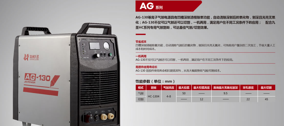 我司隆重推薦常州九圣AG-130等離子專用切割氣刨兩用機。