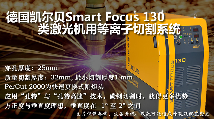 ●類激光機用等離子,穿孔厚度25mm,最小切割厚度1mm,質(zhì)量切割厚度32mm;凱爾貝專利技術“孔特切割技術”與“孔特高速切割技術”;切面的方正度與垂直度好;沒有熔渣,或者熔渣容易去除