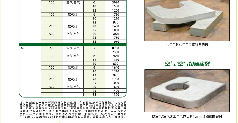 • 以空氣/空氣為工作氣體時,可完成不銹鋼的快速切割作業(yè)