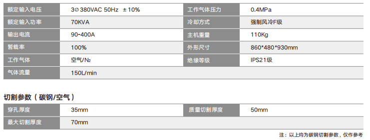 ◆ 等離子電源電流80A-400A無級(jí)可調(diào)
